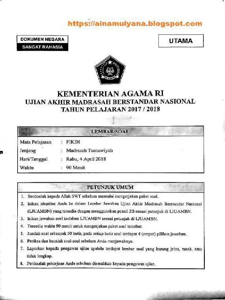 Kumpulan soal uambn fiqih mts. Buku prediksi uambn fikih untuk mts (madrasah tsanawiyah) dimensi : 19 cm x 27,5 cm. Naskah soal uabmn mts tahun 2018 dan kunci. Silahkan download soal uambn mts tersebut dengan gratis.