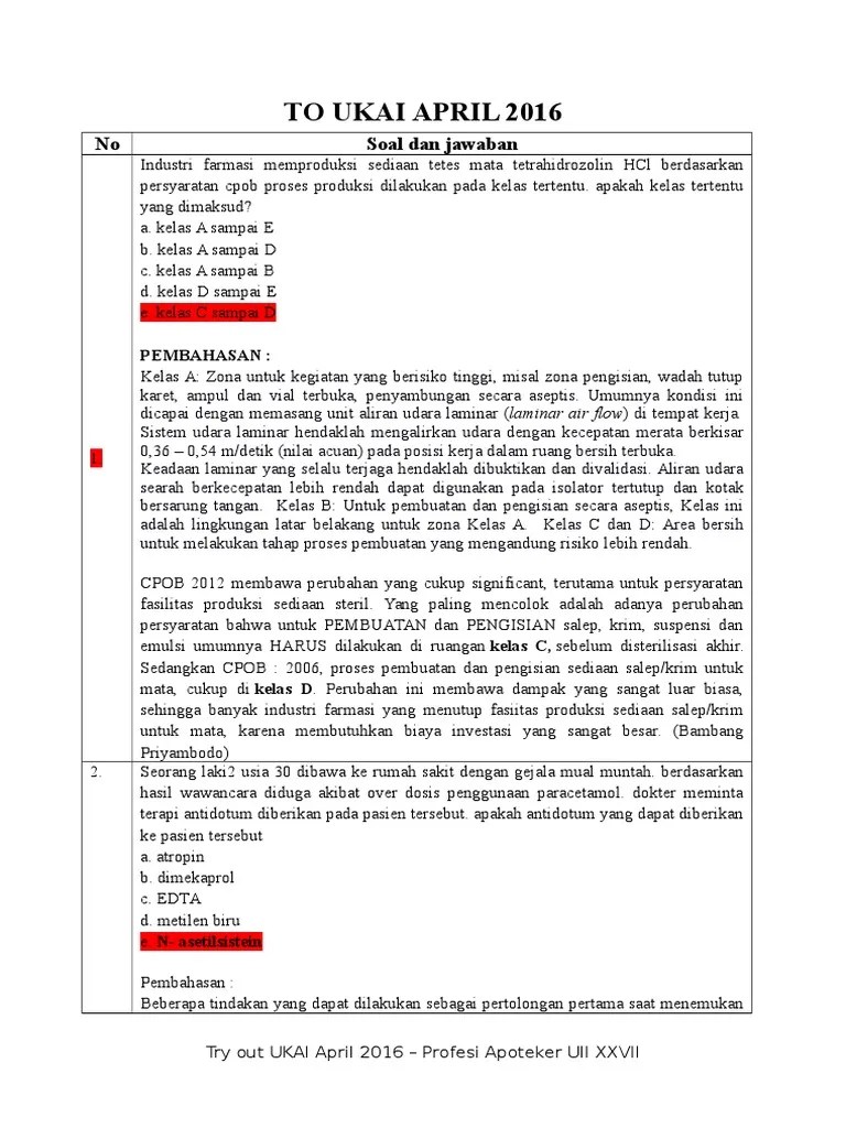 pembahasan 450 + + soal lulus ukai uji kompetensi apoteker indonesia 2020 2021, di mana lagi menjual lebih murah dari rp34,000. Komun id bersama kita bisa. September 16, 20 ciriciri gejala. soal uji kompetensi bidan dilengkapi kunci jawaban yang sudah kami sediakan berikut ini adalah soal dengan tema asuhan kebidanan kehamilankami harap bisa membantu mahasiswa bidan agar bisa lulus ketika mengikuti uji kompetensi bidan. (uji kompetensi apoteker indonesia) fasilitas program: Saat ini ia didiagnosa mengalami efek samping hepatotoksik ditandai dengan tidak normalnya nilai alt ast. pembahasan contoh soal try out ukai part 1. ukai merupakan syarat lulus bagi mahasiswa apoteker semenjak tahun 2014. Pedoman pengembangan soal ukai dengan metode cbt halaman 2 petunjuk pembuatan soal 1. Menarik soal tes apoteker unjani pdf paling heboh soal ukai pages 1 39 text version fliphtml5. Konsentrasi obat dalam plasma karena sisa regimen obat. soal terdiri dari stem soal yang berbentuk skenario (vignette), pertanyaan, dan lima pilihan jawaban dengan satu jawaban benar. Mulai dari farmasi komunitas, farmasi klinis, dan farmasi industri.