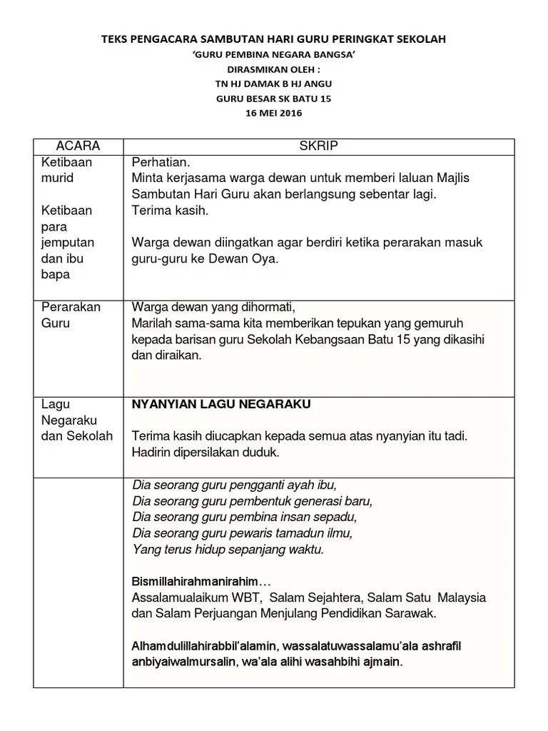 Contoh teks pembawa acara peringatan hari guru nasional pgri. Pada kesempatan baik ini, saya akan memberikan contoh master of ceremony (mc) atau pembawa acara dalam rangka peringatn hari guru di sekolah. (hari), (tanggal,bulan,dan tahun) in our big event: Admin kali ini akan membagikan teks pembawa acara(master of ceremony/mc) dalam bahasa inggris sebagai referensi kalian: Dimana, kita senantiasa dalam keadaan sehat wal afiat dan dapat hadir bersama disekolah yang kita cintai ini mengikuti acara qultum pada pagi hari ini.